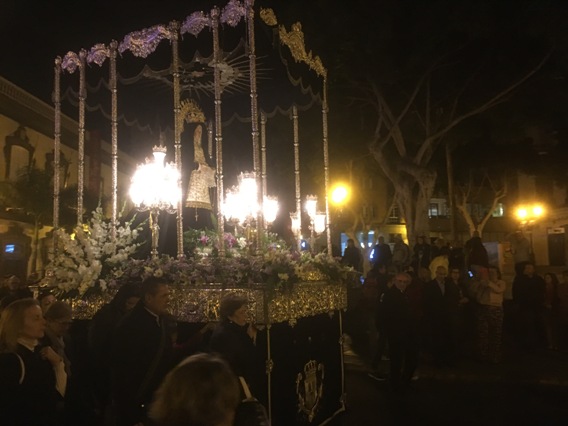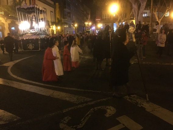 Wij gaan naar Vegueta en bekijken eerst binnen van dichtbij het beeld van de wenende Maria die straks naar buiten wordt gedragen.