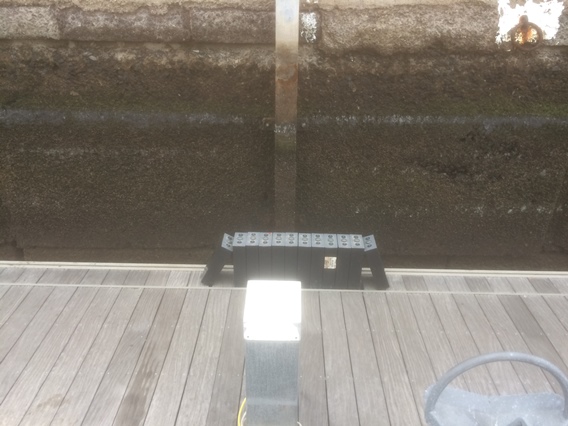 Eenmaal op de steiger zijn deze mannen er als de kippen bij om ze op te halen. Als ze de accu's inleveren krijgen ze er overigens geld voor. Maar scheelt ons een hoop sjouwwerk.