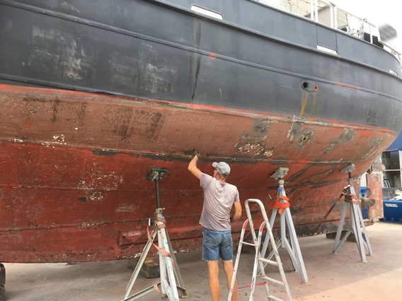 We krijgen goede adviezen en langzaam maar gestaag vordert de klus. Na ruim 3 weken kunnen we weer te water.