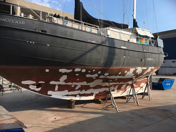 Eind januari gaan we de kant op om de nieuwe antifouling aan te brengen. De staat van het onderwaterschip valt erg tegen, de pokken hebben de laatste weken hier ook nog eens extra hun best gedaan.