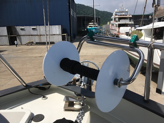 De RVS lasser is een schot in de roos, we hadden er niet zo’n vertrouwen in alles te kunnen regelen maar ze kunnen hier gewoon alles voor je maken. Beter lummelbeslag, beugels voor de lange lijnen die voor Patagonië nodig zijn, en zelfs een nieuwe ankerklauw. Onze was het met een heftige windvlaag in Rio zodanig verbogen dat die niet meer bruikbaar was.