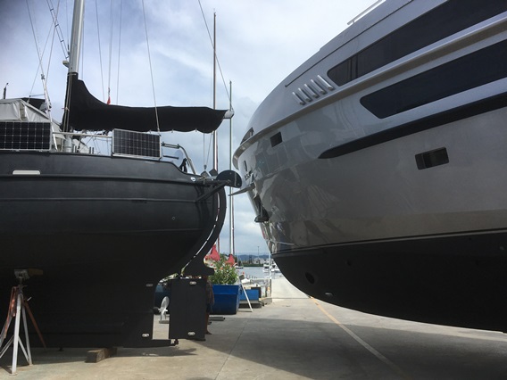 We stellen het nog even uit en blijven voorlopig in het water om daar te klussen. Wel vragen we offertes aan voor de aanpassing van hydroliek-leidingen in de motorruimte, al lang een doorn in het oog van Steven, vervanging van kapotte ankerrollen en een nieuwe dinghy met harde bodem, want elke keer als we een plakker bevestigen is er op een andere plek weer een lek.