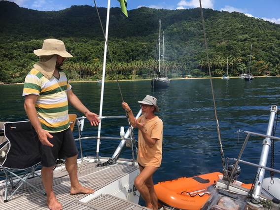 Voorlopig liggen wij nog even voor anker op de mooiste plek van Brazilië en blijven we afstand houden.