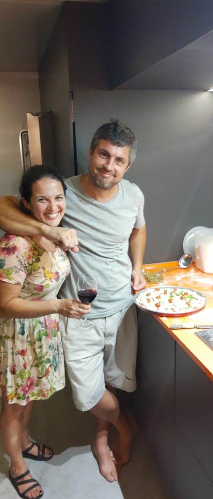In korte tijd zijn ze heel dierbare vrienden geworden, over en weer tussen de boten en de container wordt er heel wat gegeten, BBQ en geborreld. Geen Braziliaanse BBQ, want Agustin is Argentijn en daar gaat het heel anders.