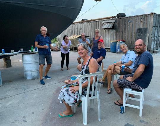 Als we op de kant staan is Steven jarig, met Rogerio van de buurboot, Henk en Annette, Karen en Agustin van de containerwoning en Tom en Lilly houden we een feestje onder de boot. Het begin van een heel gezellige tijd.